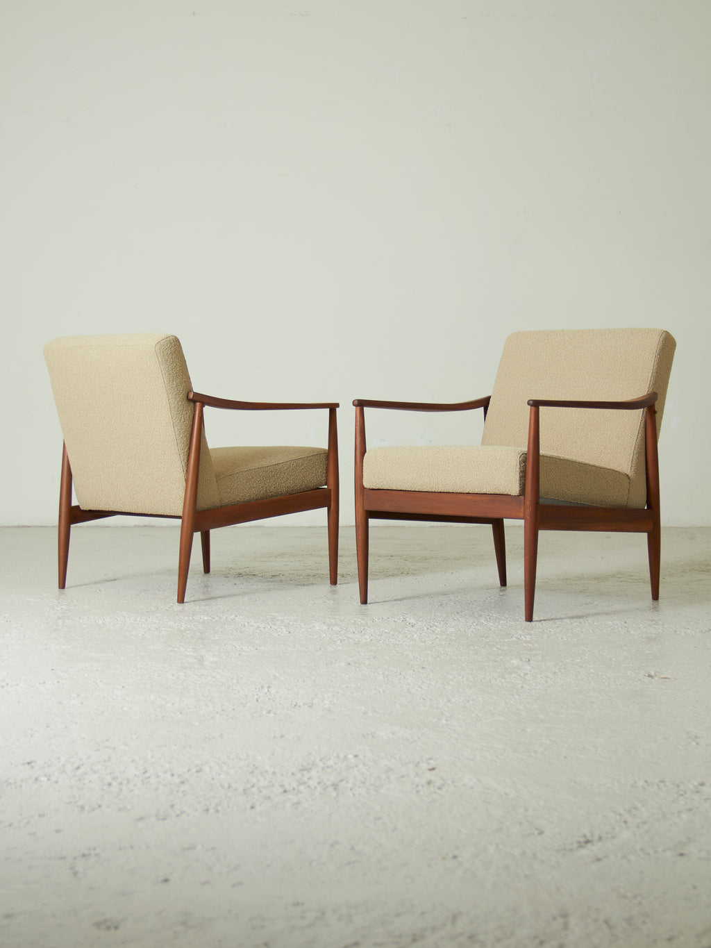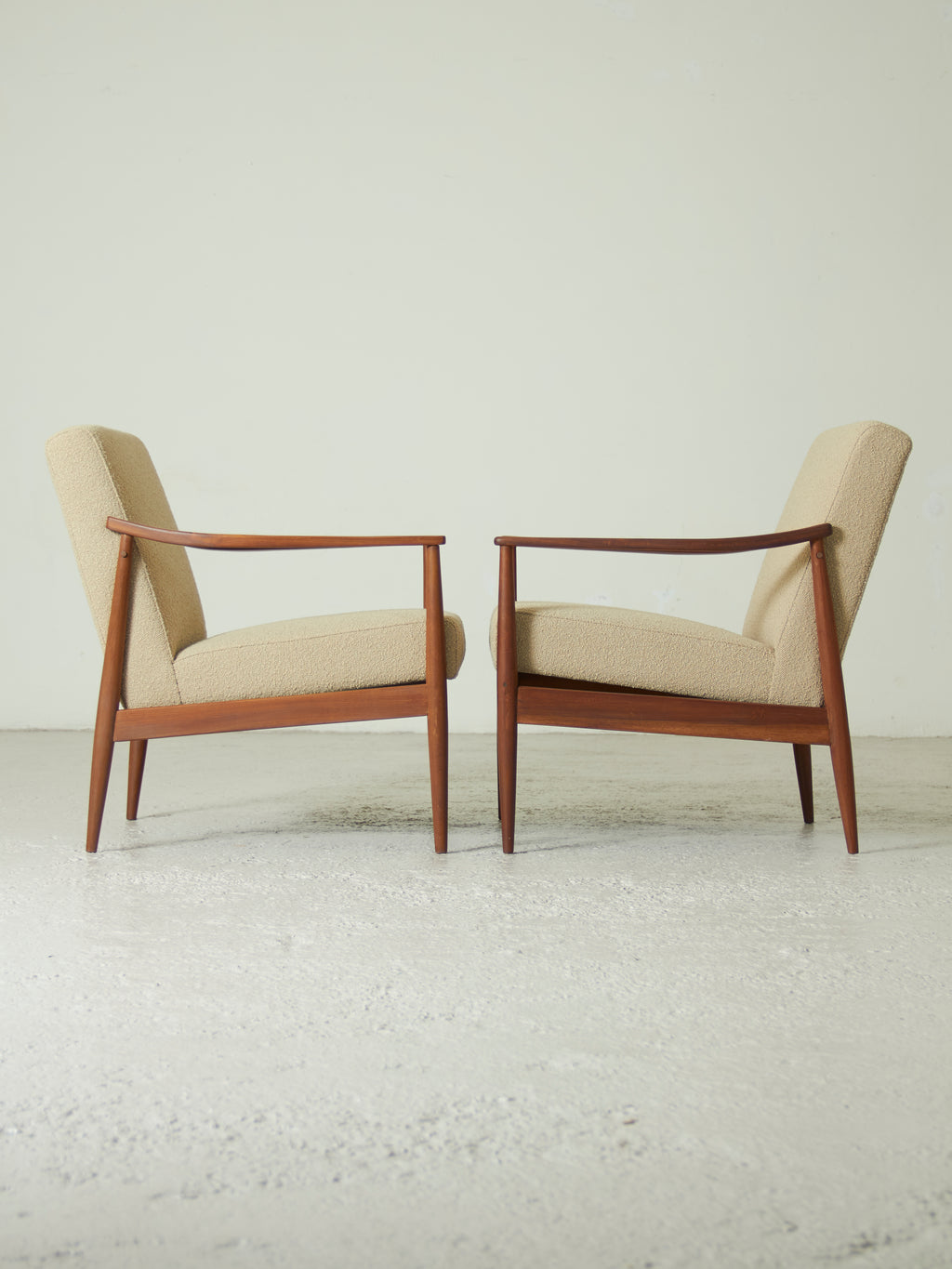 Parella de butaques d’estil escandinau produïdes als anys seixanta. En la línia de les peces realitzades per la marca AG Barcelona, inspirades en el disseny nòrdic.