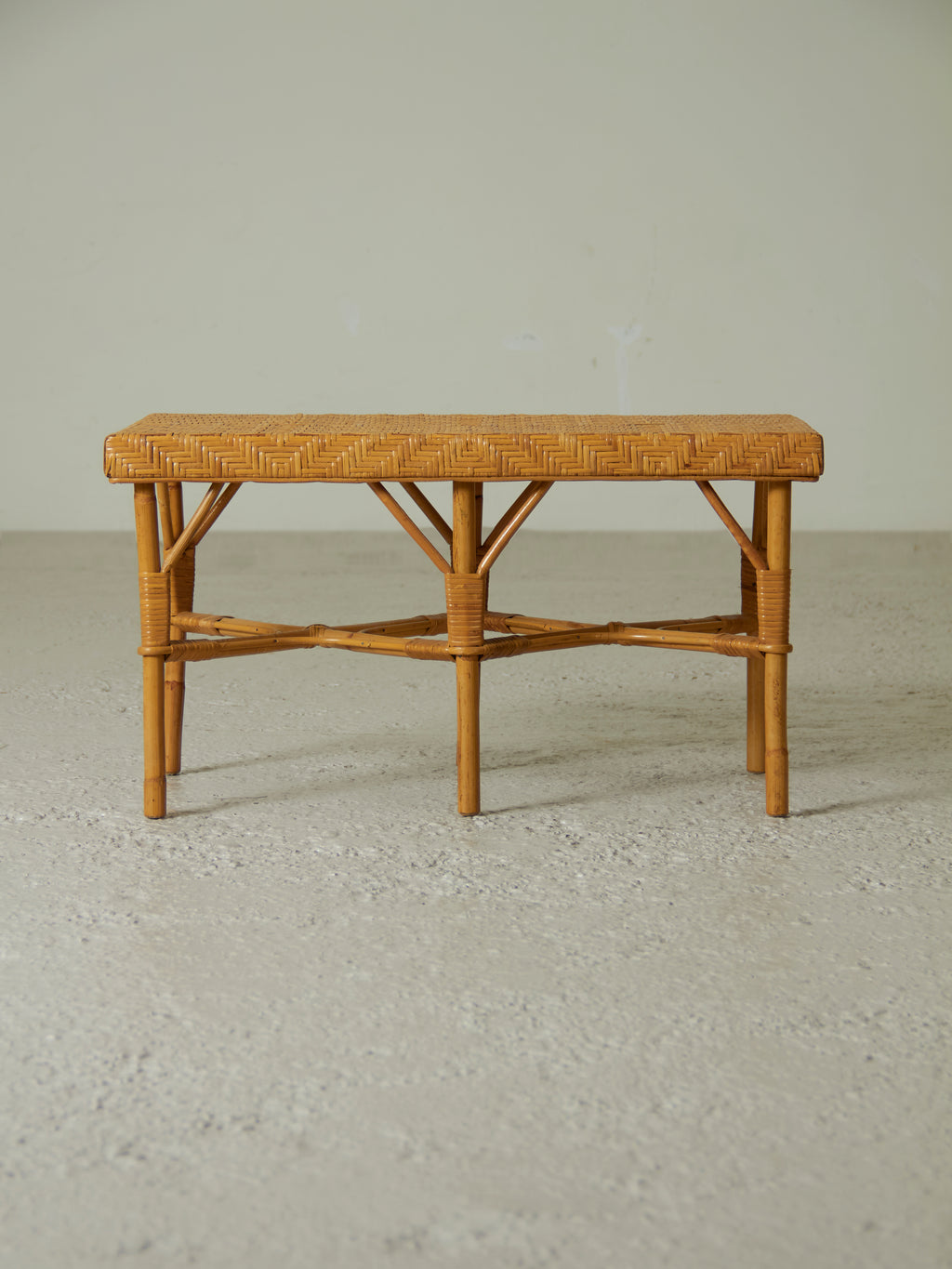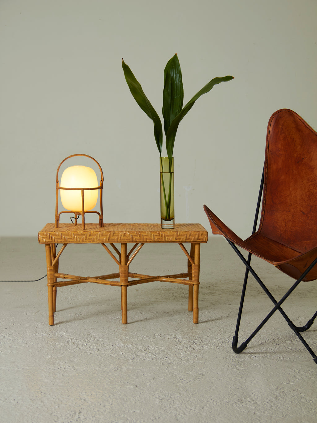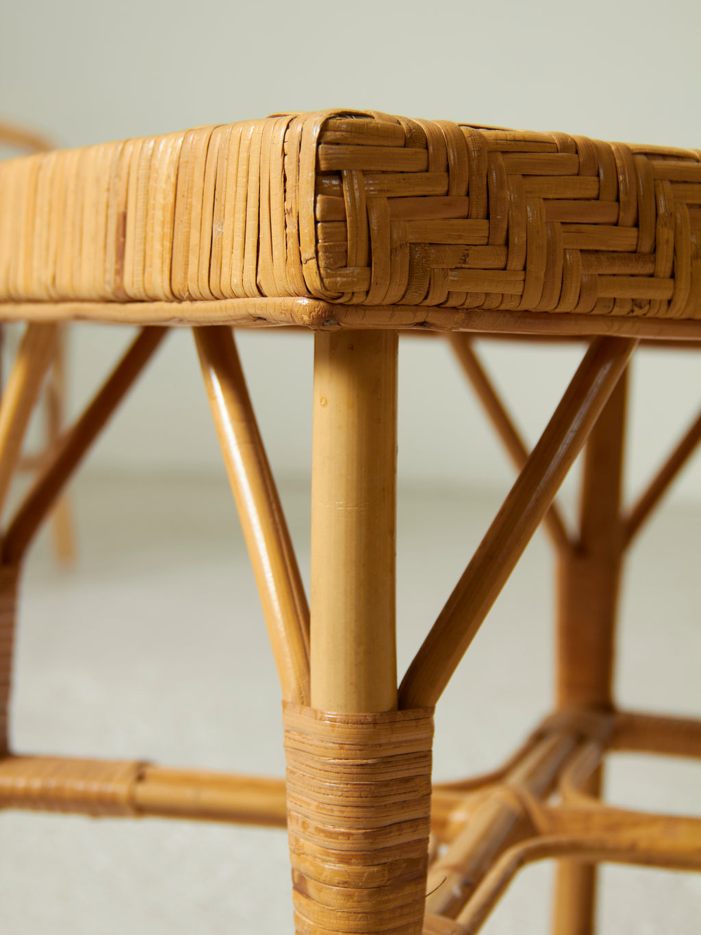 Banqueta realizada artesanalmente en ratán, diseñada en la década de los setenta por Federico Correa y Alfonso Milá y producidas por la firma Gres.