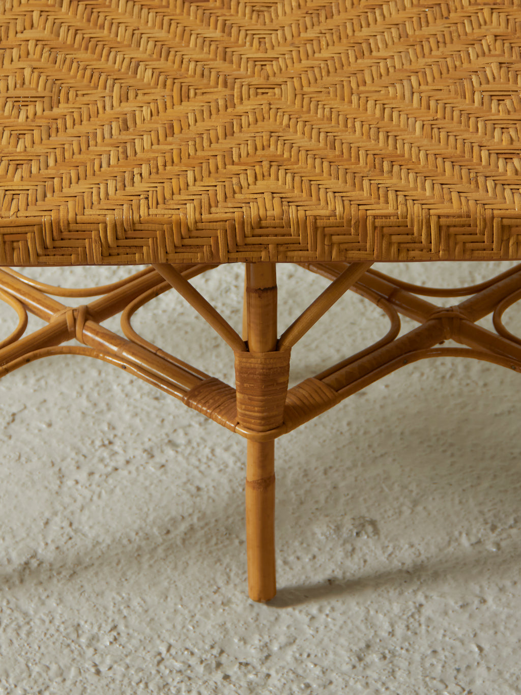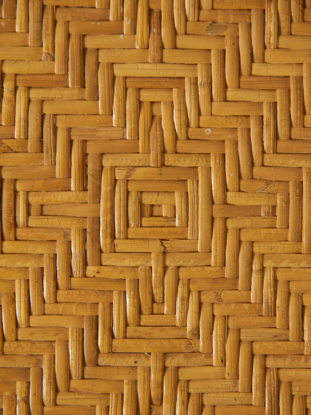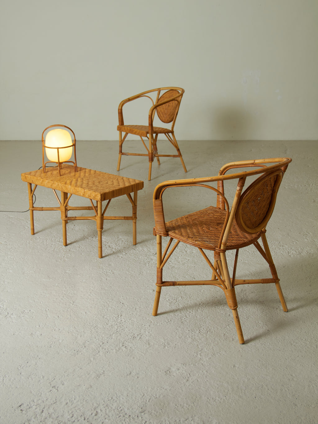 Banqueta realizada artesanalmente en ratán, diseñada en la década de los setenta por Federico Correa y Alfonso Milá y producidas por la firma Gres.
