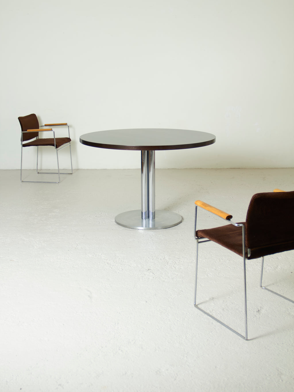 Mesa redonda diseñada y producida en los años setenta.