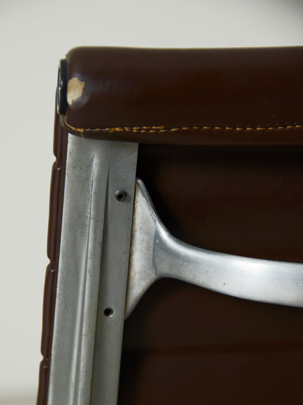 Nació para una casa privada en Columbus, Estados Unidos, construida por los arquitectos Saarinen y Girard. Los Eames adaptaron en la Aluminium Chair la forma del asiento a la propia estructura de la silla tensando la tela o el cuero entre las dos partes de la estructura, dejándolo así rígido pero manteniendo su elasticidad. Esta forma elástica permite que se adapte fácilmente al contorno del cuerpo, de forma paulatina, aumentando así el confort del asiento.