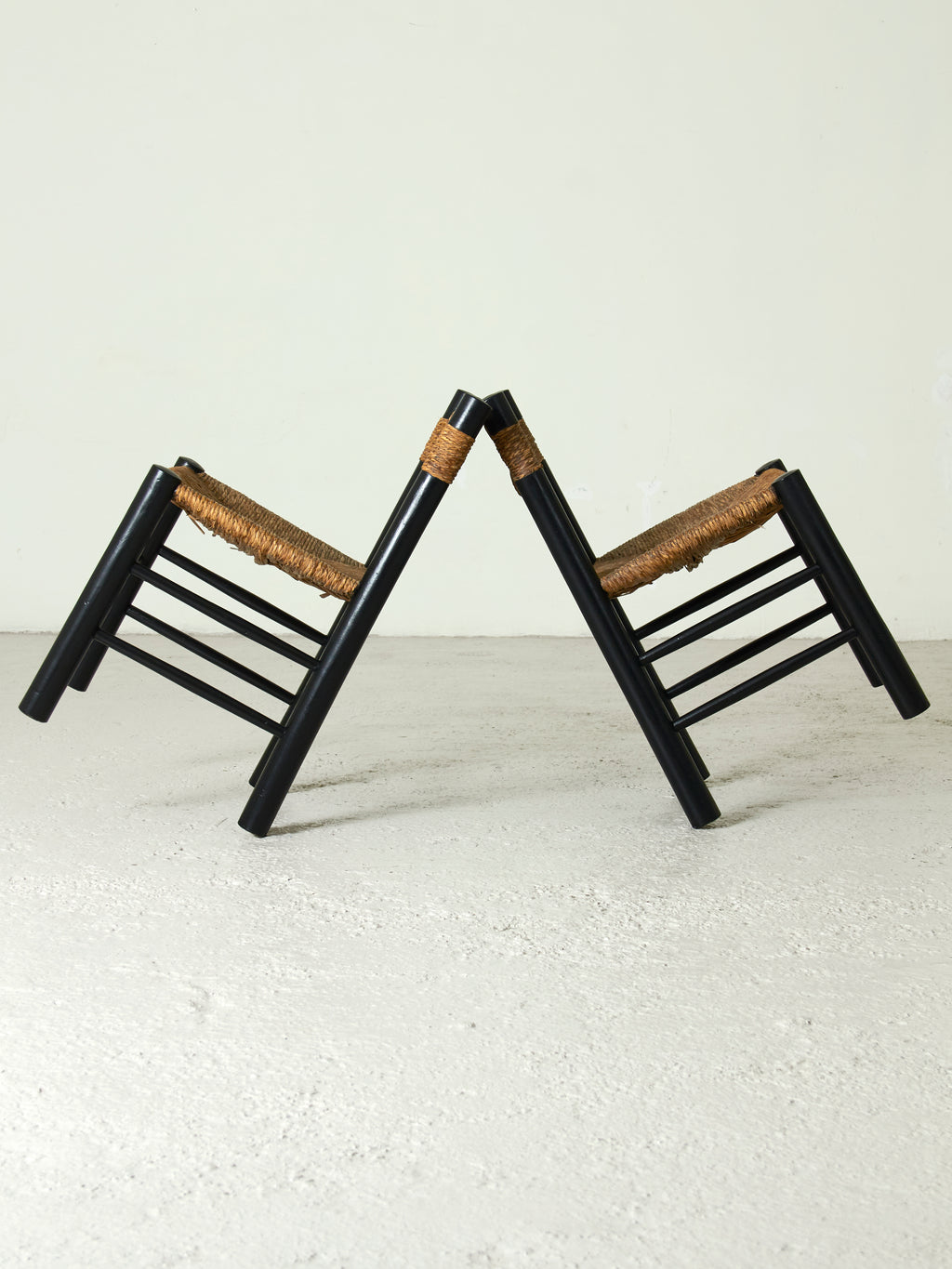 Its design resembles the reinterpretation Charlotte Perriand made of the traditional French chair in the “Bauche n. 19” and “Dordogne” models.